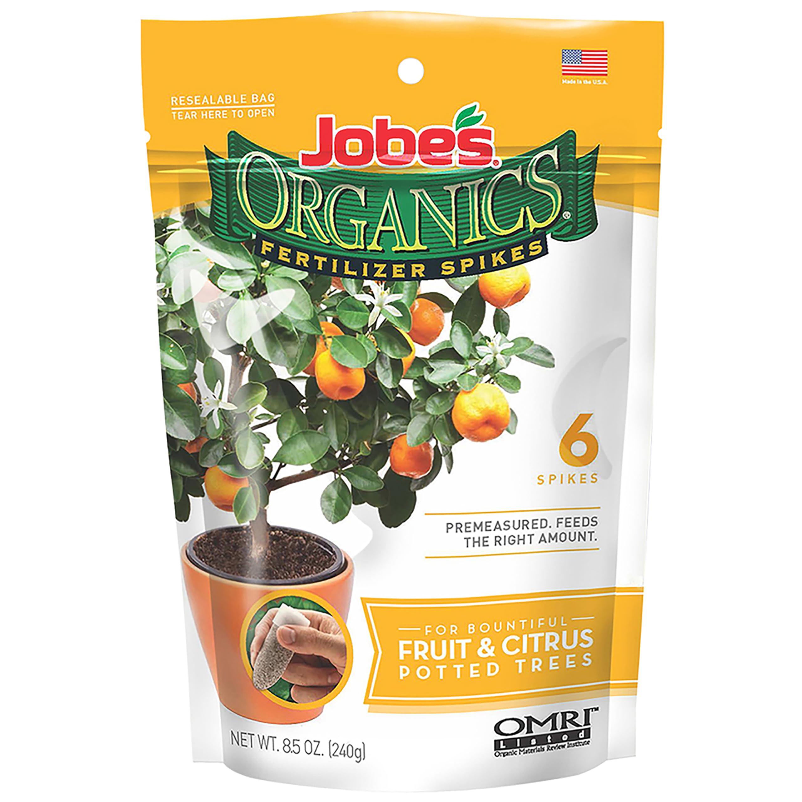 - Jobe’s organic fertilizer spikes are measured to provide the right amount of nutrients for fruit and citrus plants without risk of over fertilizing