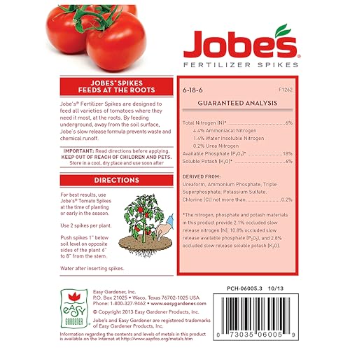 - Jobe’s fertilizer spikes are pre-measured to provide the right amount of nutrients for tomatoes without risk of over fertilizing