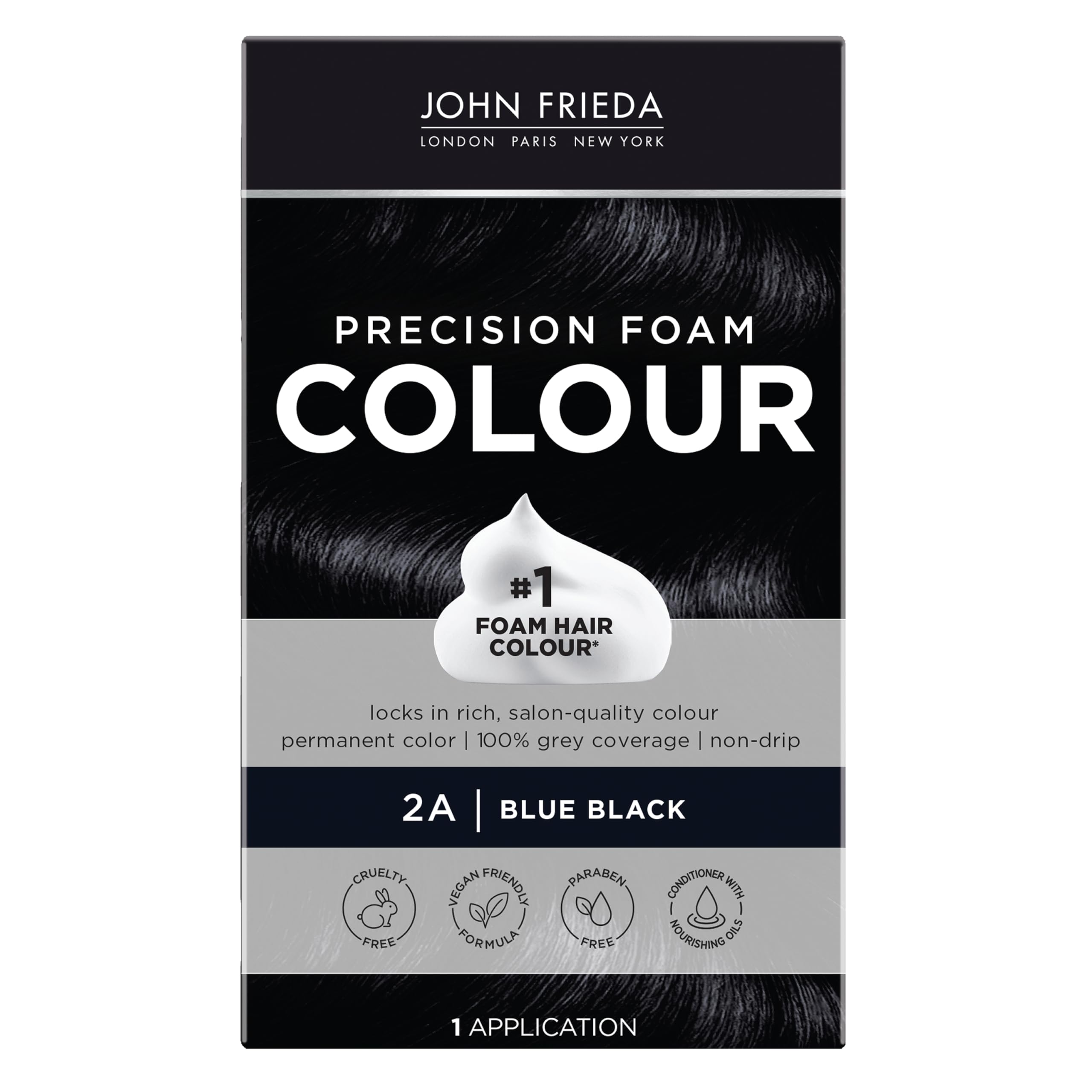 - NOURISHING POST-COLOUR CONDITIONER – John Frieda Precision Foam Color enhances color for long lasting lushness while moisturizing and conditioning for soft, intense, blue black hair