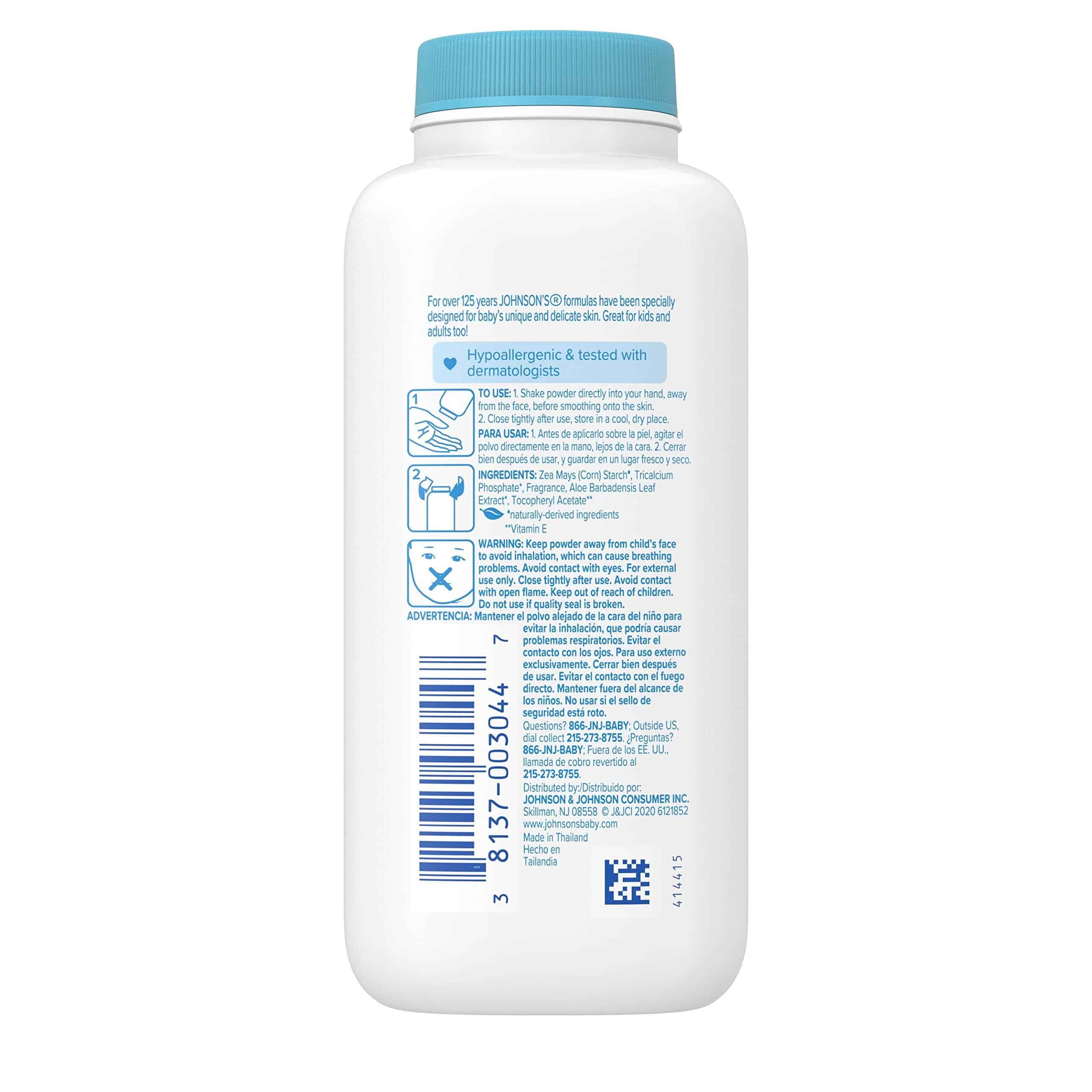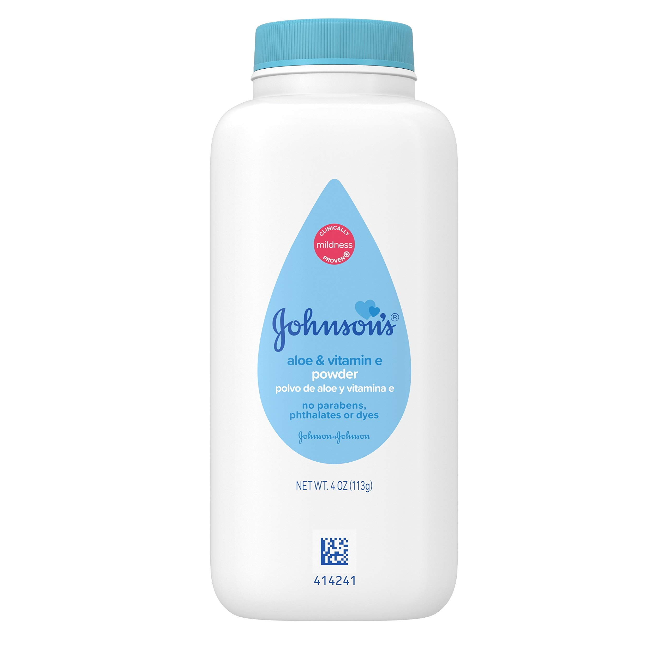 - 4-ounces of Johnson’s baby powder with naturally derived cornstarch, aloe, and vitamin E provides a gentle way to soothe your baby’s skin and leave it feeling soft and smooth