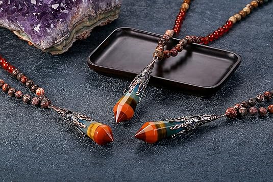 - Ideal Gift Choice: 108 Mala Beads Reiki Healing Crystal Pendulum Necklaces Wicca Balancing Pointed Pendant Pendulum, can be used for divination and dowsing. It’s a good gift for mother, father, lover and family on Birthday, Valentine’s day, Christmas, etc.