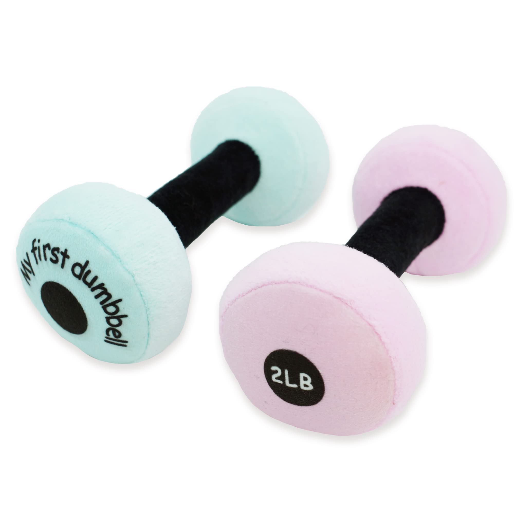 • SAFE FOR KIDS: The fabric material is high quality ultra soft plush.The dumbbell toys are hand-made and have no sharp parts which may cause a hazard. The plush soft dumbells are 100% safe for your newborn infant, baby, or toddler.