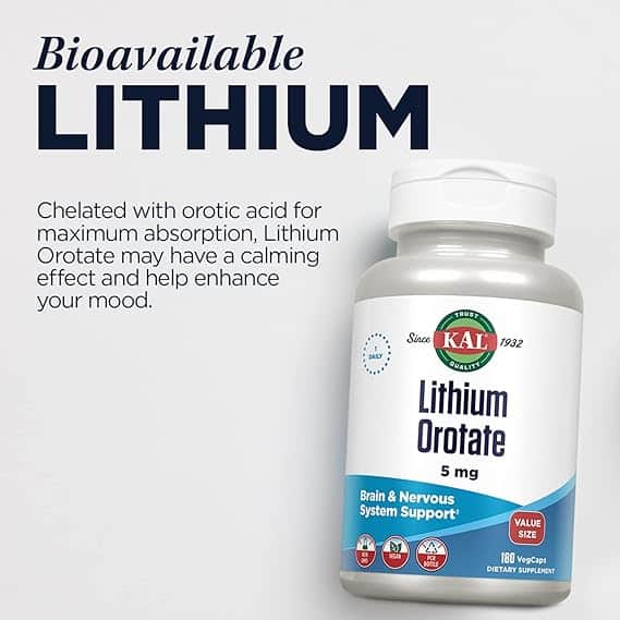 Any questions related to KAL Lithium Orotate 5mg, Low Dose Lithium Supplement for Brain, Nervous System and Mood Support, Chelated and Highly Bioavailable, Vegan, Non-GMO, Organic Rice Extract Blend, 180 Servings, 180 VegCaps?