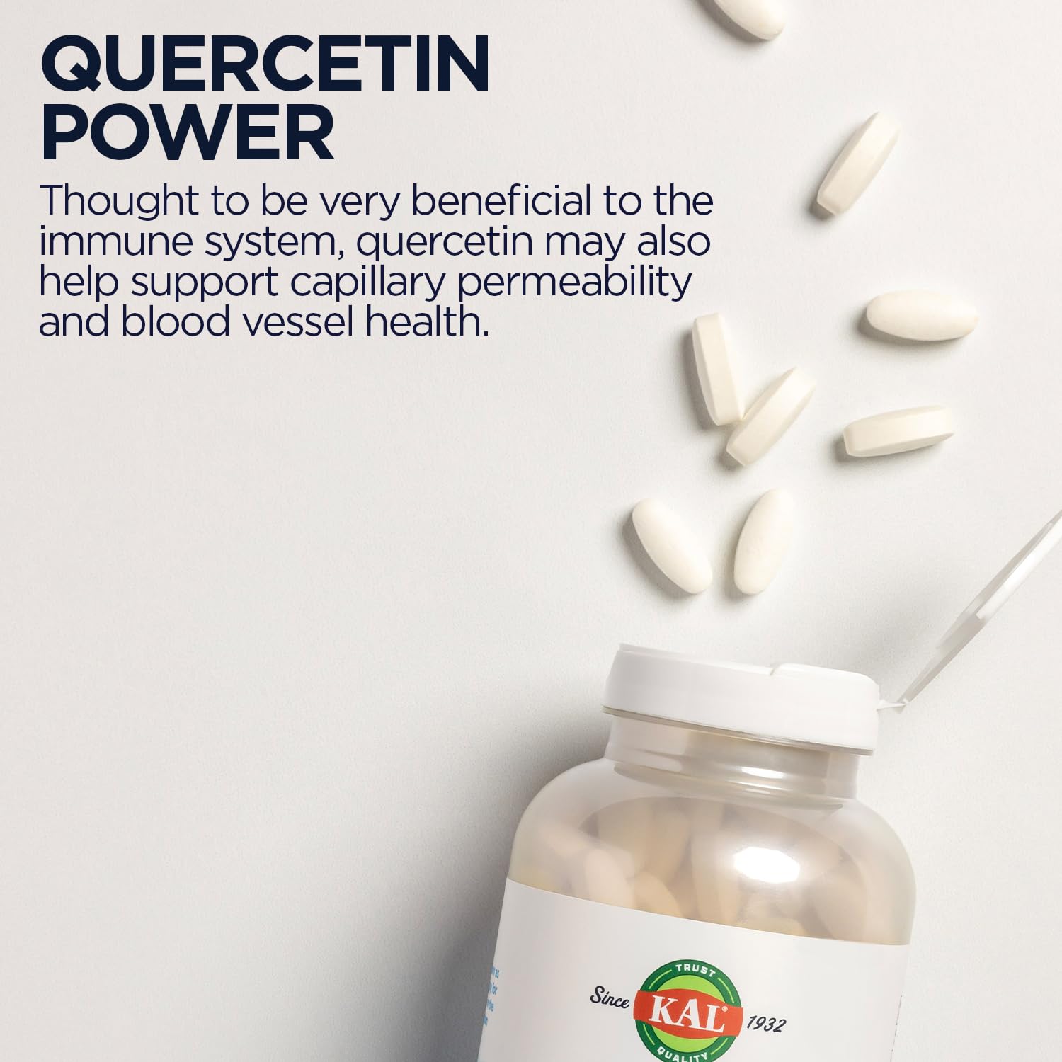 - Quercetin Supplement ? A non-citrus bioflavonoid, quercetin is not produced in the body and must be obtained through supplementation or from the diet. KAL Quercetin provides 1000 mg per tablet.