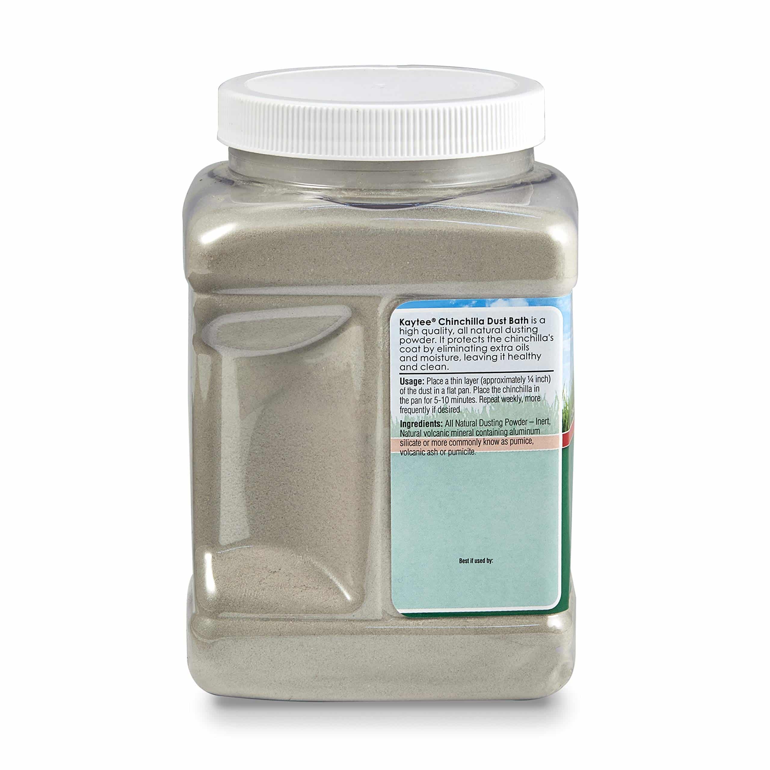 Kaytee Chinchilla Dust Bath is a high quality, all natural dusting powder. It protects the chinchilla’s coat by eliminating extra oils and moisture, leaving it healthy and clean.