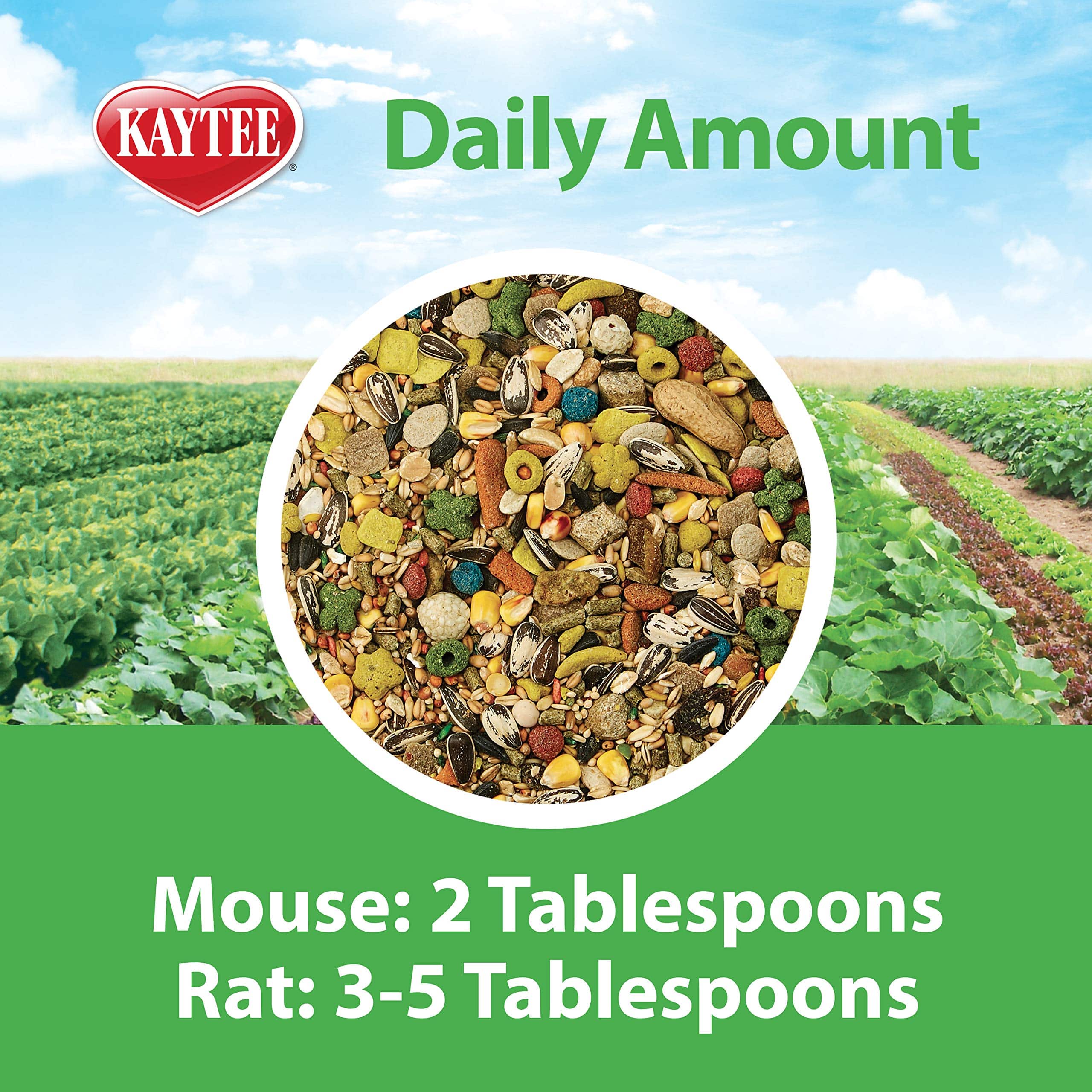 Kaytee Fiesta Mouse and Rat food is a nutritionally fortified gourmet diet made of a premium blend of fruits, vegetables, seeds and grains offering maximum variety, fun and nutrition for small animals. Fiesta contains prebiotics and probiotics to support digestive health and is formulated with your small animal species in mind.