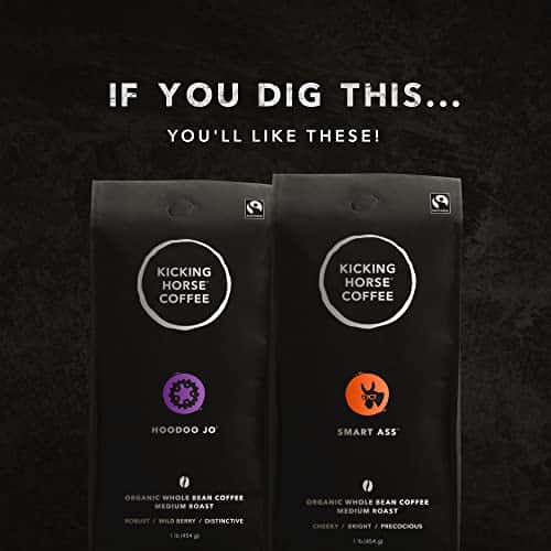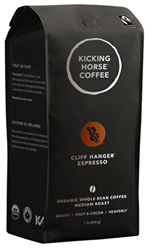 Kicking Horse Organic Medium Roast Whole Bean Coffee, Cliff Hanger, 1 lb Bag 100% Arabica Beans responsibly sourced from Africa, Indonesia, and Central & South America. Bright, Fruit & Cocoa, Heavenly flavor notes. Fairtrade, Organic, and Kosher Certified. Roasted in Canada. Imported from Canada. Imported from Canada. Imported from Canada. Imported from Canada