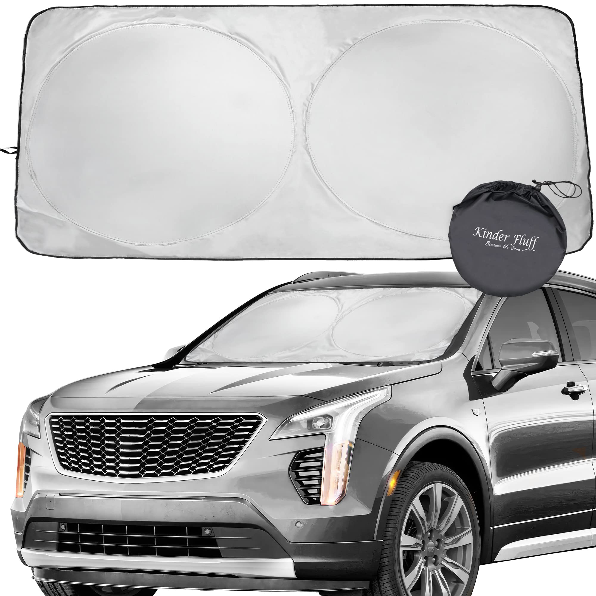 kinder Fluff Windshield Sun Shade -The Only Certified Car Window Shades Blocking 99.9% UVR