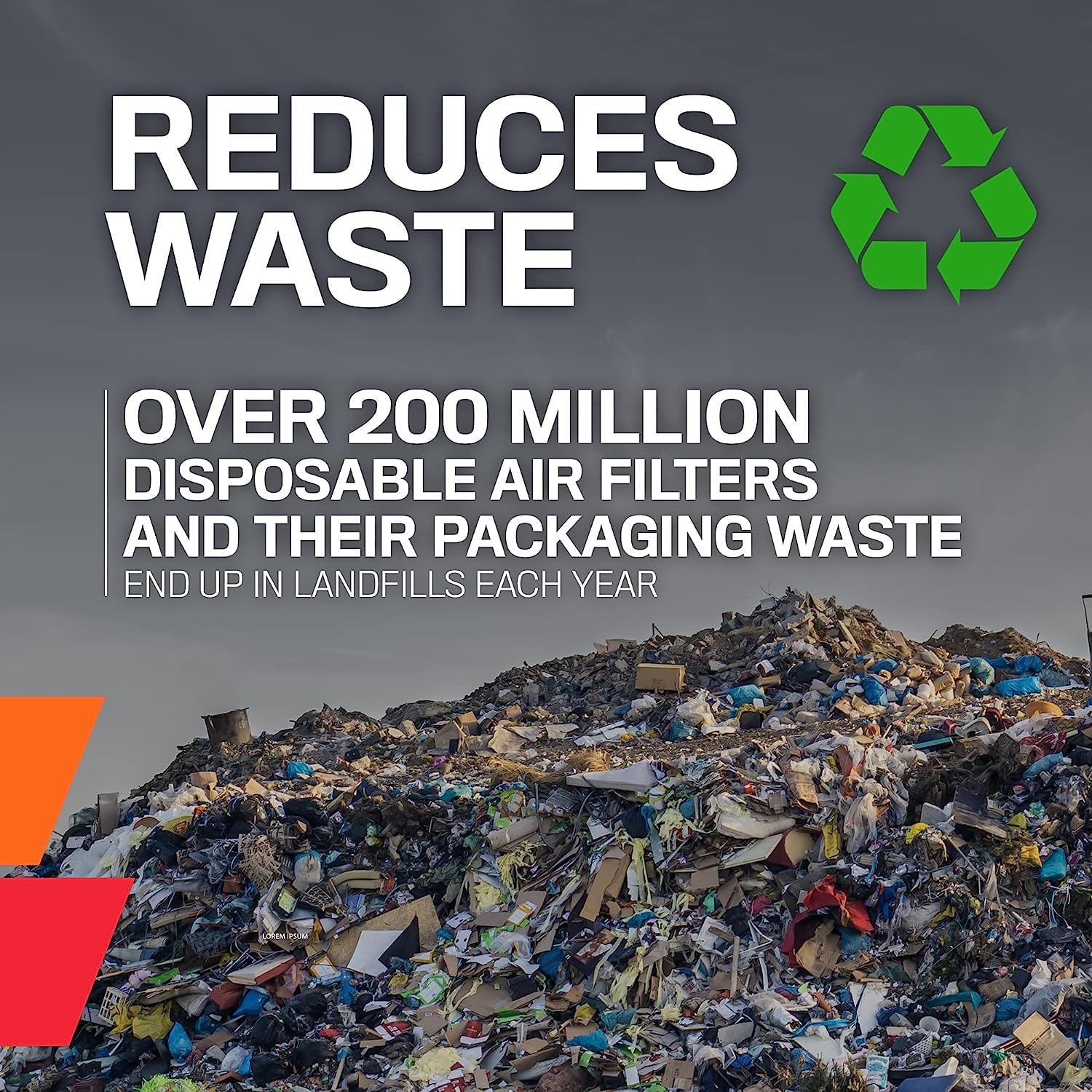 - REDUCES WASTE: Over 200 million disposable air filters and their packaging waste wind up in landfills each year- reusable filters help reduce waste in our landfills