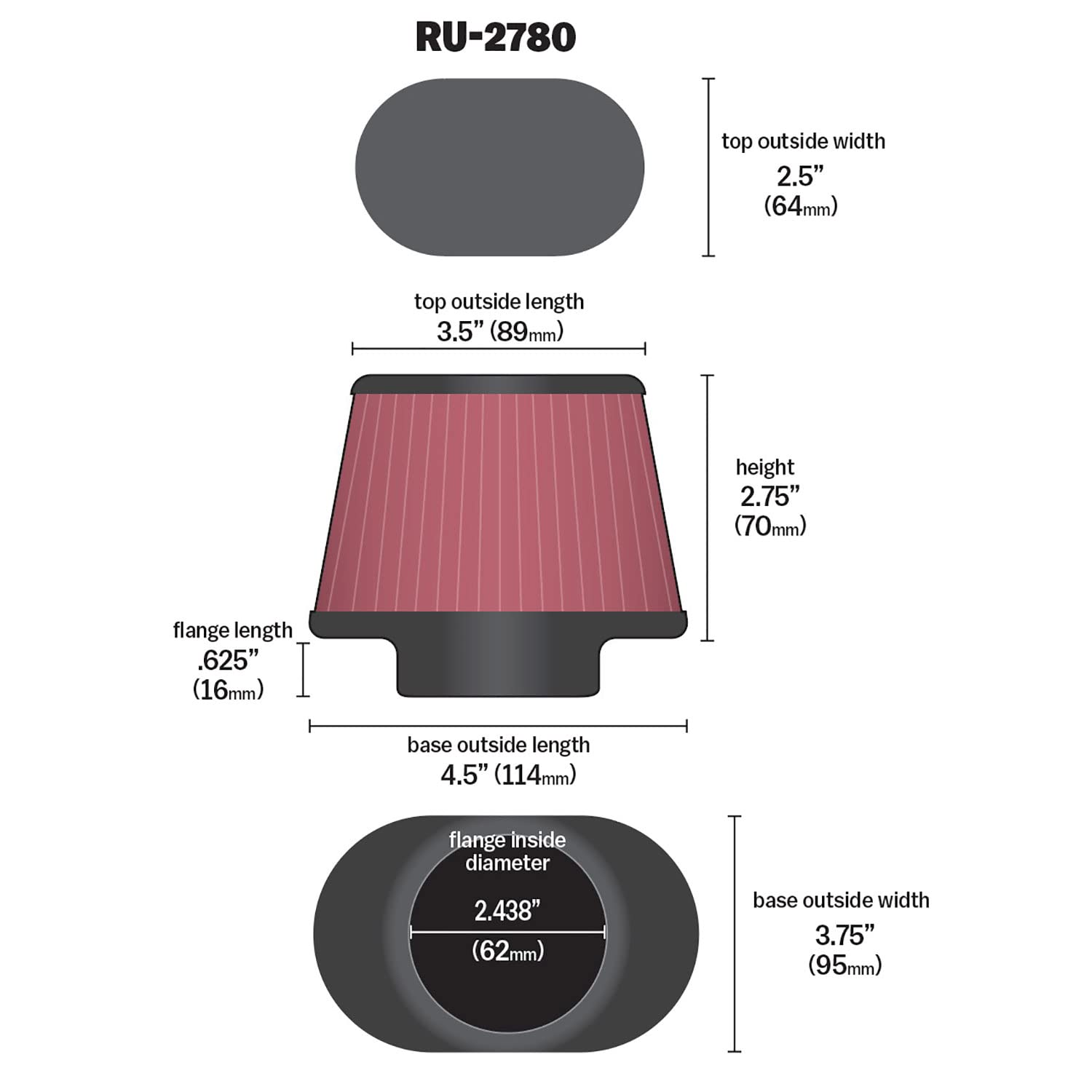 K&N Universal Clamp-on Air Filters are manufactured for a wide variety of applications and unique filtration needs. K&N performance High-Flow Air Filters are engineered to improve engine performance by increasing airflow. Unlike disposable paper filters which must be frequently replaced, K&N Air Filters are washable, reusable, and engineered to last for the life of your vehicle. These versatile filters are constructed with ultra-strong molded pliable rubber flanges that absorb vibration and allow for secure attachment. Available in round, tapered (cone-style), and oval designs, K&N offers thousands of clamp-on filters in a multitude of shapes and sizes that cater to many precise applications. Join the millions of customers who have saved money and improved vehicle performance by upgrading to K&N filtration.
