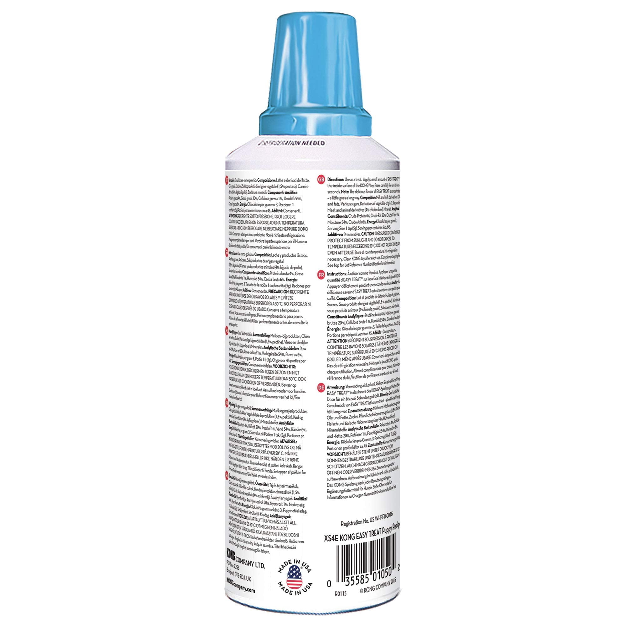 KONG Puppy Easy Treat is uniquely formulated to meet the needs of puppies. The chicken liver recipe is sure to entice and engage pups that are just getting started while providing an easy no-mess treat solution for pet parents. KONG Puppy Easy Treat is an enticingly delicious addition when added to a stuffed Puppy KONG. A uniquely designed nozzle easily controls the amount of KONG Easy Treat while having the added benefit of a convenient, no mess stuffing solution. Looking for help with crate training? Add KONG Puppy Easy Treat to your Puppy KONG stuffing for an enjoyable in-crate experience.