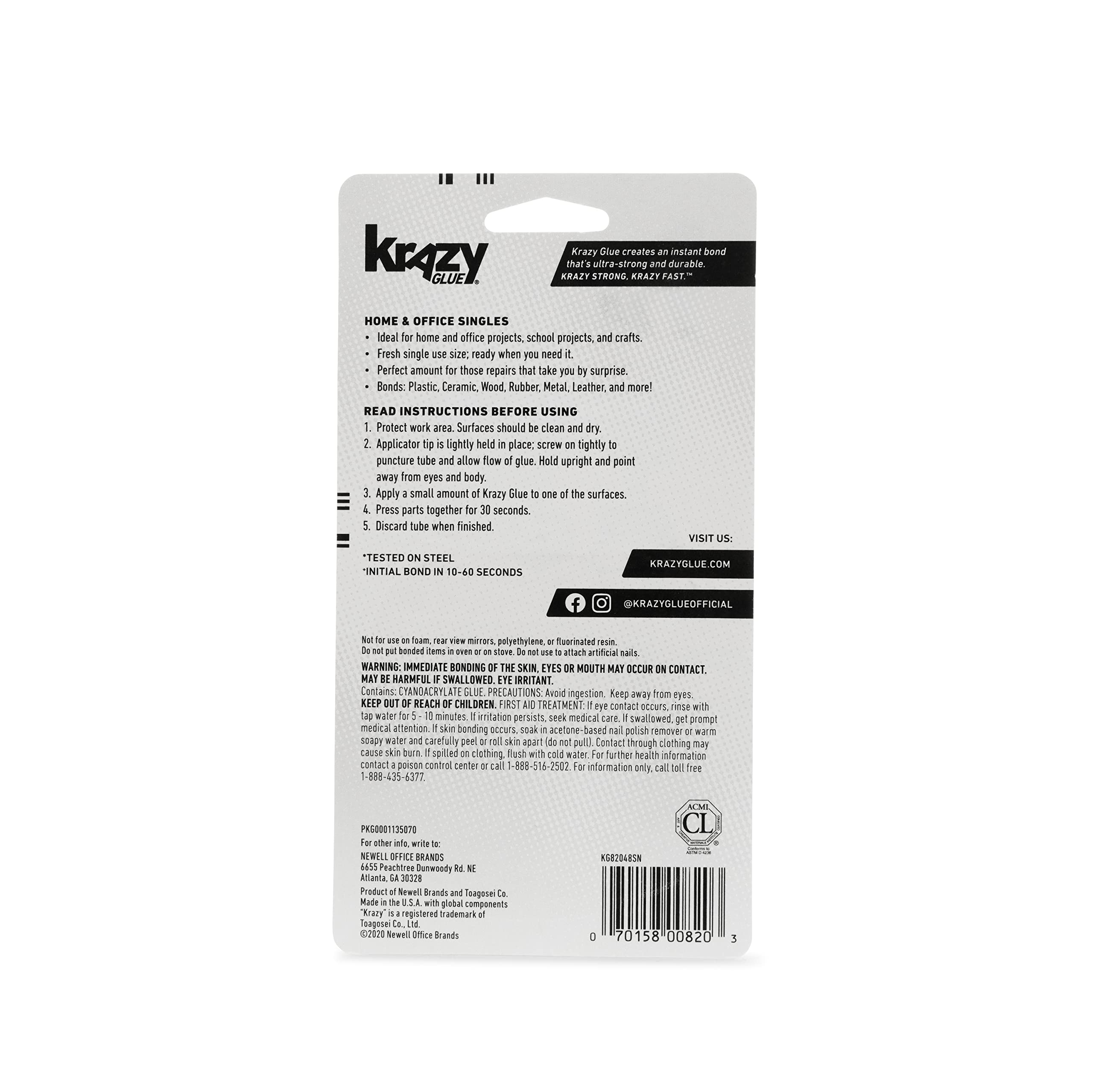For insanely versatile, lightning fast and conveniently portable everyday repairs, depend on Krazy Glue Home and Office Single-Use Super Glue. Pint sized but powerful, this craft glue is great for on-the-go repairs, slipping right into purses, briefcases or craft drawers. Fresh every single time you use it, each tube has the perfect amount of instant glue for one fast fix. Plus, the fine tip is great for precise fixes and delicate repairs. The #1 super glue, you can count on Krazy Glue for super strong, durable, crazy fast fixes. From the Manufacturer For an instant bond that stays strong, nothing beats Krazy Glue. It’s America’s leading instant glue. Consumer’s trust the name they know. Innovative premium quality product introductions to satisfy consumer demand. From the Manufacturer For an instant bond that stays strong, nothing beats Krazy Glue. It’s America’s leading instant glue. Consumer’s trust the name they know. Innovative premium quality product introductions to satisfy consumer demand.