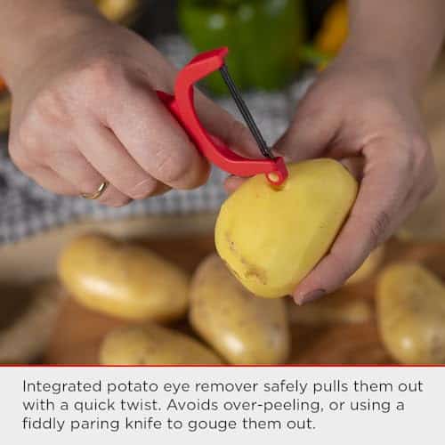 - Incorporates a convenient potato eye remover and is suitable for right and left-handed use