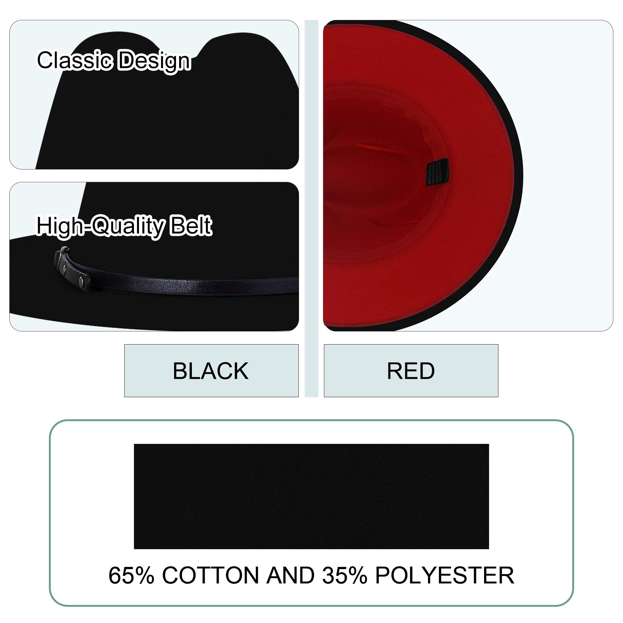 Original price was: ₹1,283.₹893Current price is: ₹893.KUJUHA Wide Brim Fedora Two Tone Dress Hat, Small-Medium, Black & Red