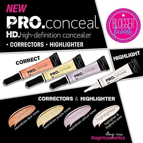 A concealer that needs no introduction. The L.A. Girl HD PRO.conceal is the holy grail of concealers. The creamy, yet lightweight texture provides complete, natural-looking coverage with a ?barely there? feel and all-day wear. Our top selling color correctors camouflage darkness under the eyes, reduce redness, and eliminate hyperpigmentation so you can stress less and slay more. A brush tip applicator makes placement easier than ever ? gently squeeze the product into the brush and apply as needed. Although PRO.conceal provides flawless coverage for its day job, as a side hustle you can use it to contour and highlight, snatching your features ? just like the PROs.