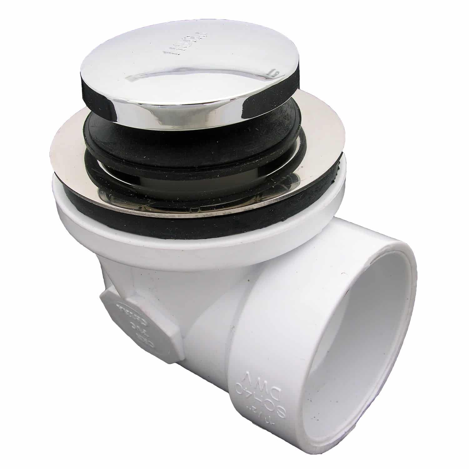 LASCO 03-4948 Bathtub Drain Elbow With Tiptoe Style Stopper, 1 1/2-Inch PVC Fitting, Chrome Plated Trim. 1 1/2-Inch tip toe style waste ell assembly. Plastic PVC construction. Chrome plated trim. Tip toe style drain. Waste ell and drain only. Tip toe style drain.