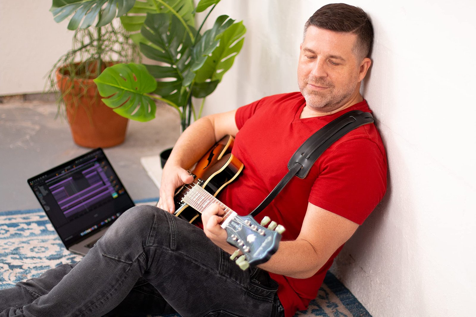 5/8 inch carving leather guitar strap with classic Fifties pad and buckle adjustment. Adjustable from 49 inches to 56 inches.