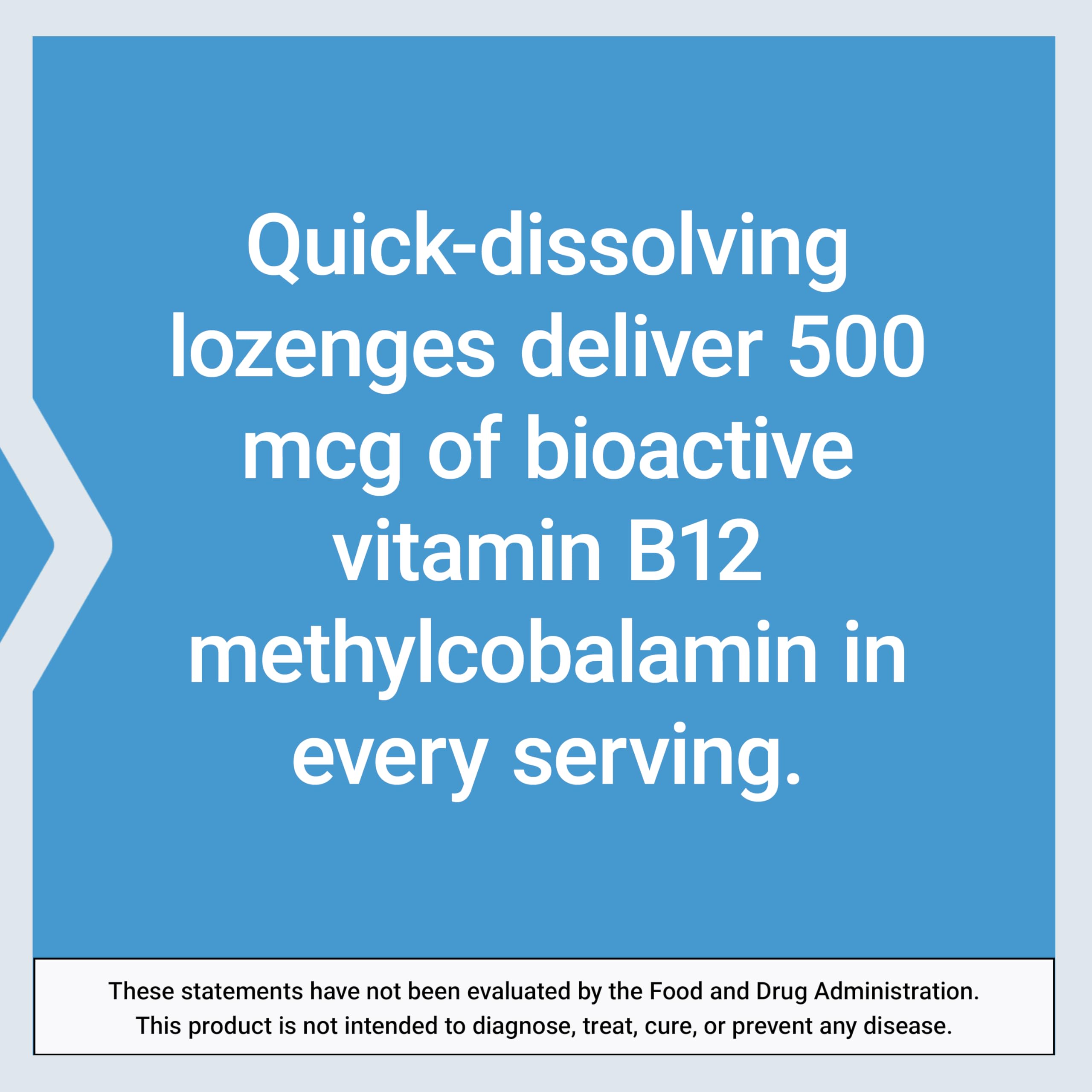 - Quick-dissolving B12 lozenges ? Getting your vitamin B12 has never been easier: our vitamin B12 supplement delivers 500 mcg of methylcobalamin in every gluten-free, vegetarian lozenge.