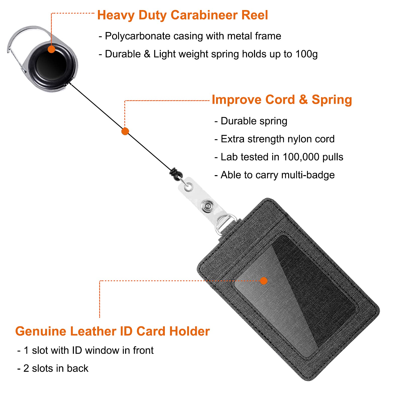 - ??????????-?????? ???? ??????: Lanyard and the carabiner badges reel with clip can offer some ways to fasten your badge holder. With a carabiner clip, our ID holder with lanyard can easy to attach to your clothes, purses, backpacks, satchels, etc. You can also attach to your belts or pockets by using the belt clip