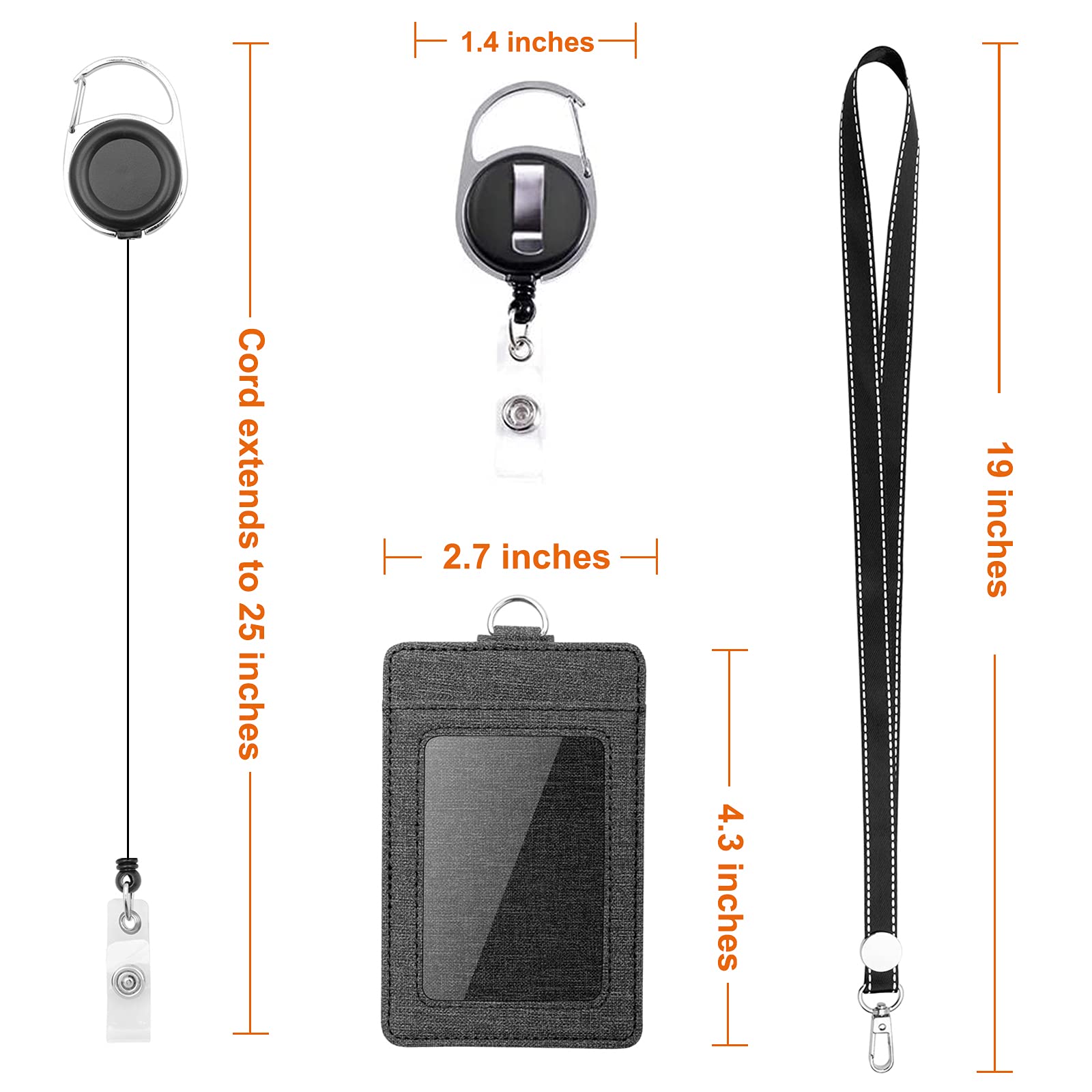 - ???????????????? ?????? ????????: The ID holder is made of durable PU leather (Linen finish) while the lanyard is made of durable Polyester. Holder Size: 4.33″L x 2.75″W (11 x 7cm), Fit Card Size: 3.6″L x 2.5″W (9.2 x 6.3cm), 19″ in the length of lanyard
