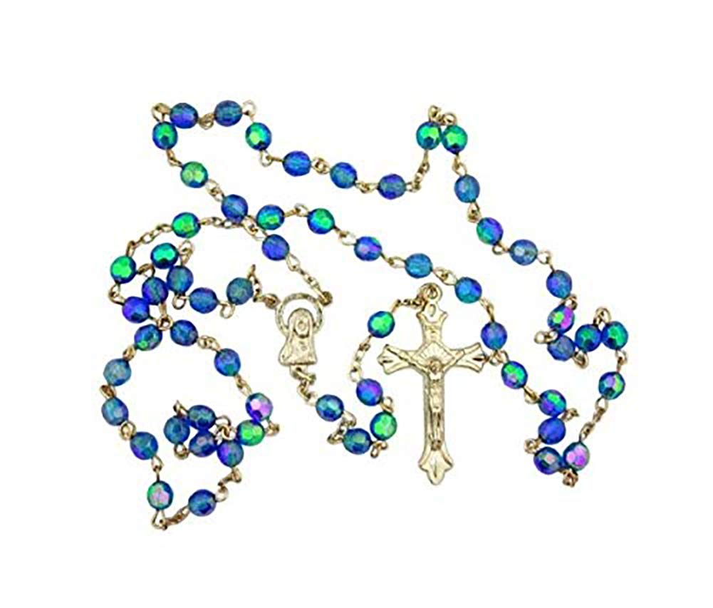Original price was: ₹9,740.₹6,233Current price is: ₹6,233.Light Blue Aurora Borealis style Glass 6MM Bead Rosary w Virgin Mary Center
