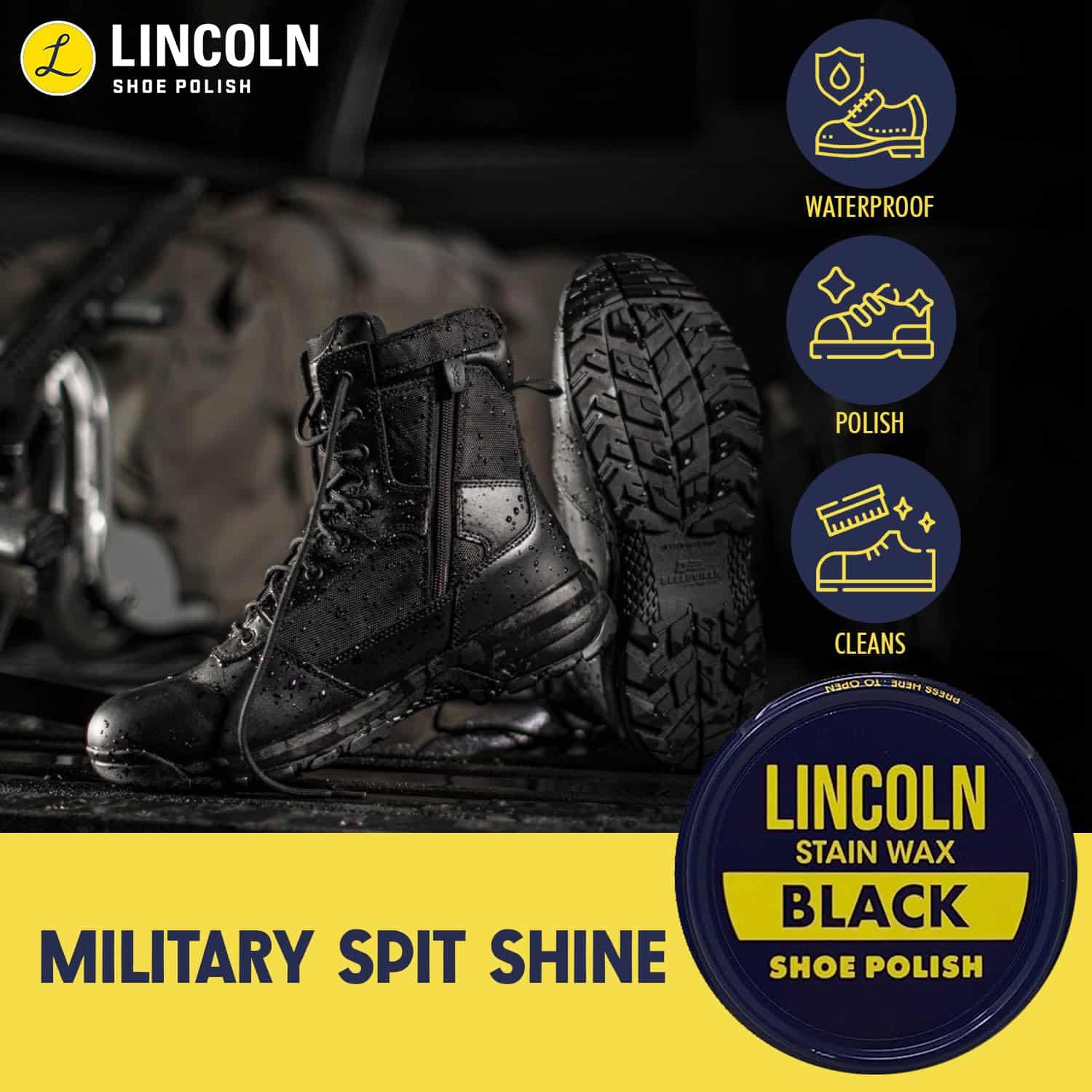 - Premium Shoe and Boot Polish: Achieve the perfect spit shine with Lincoln Shoe Polish Wax. Also gives color for a brilliant shine and scuff cover. The premium Parade Gloss.