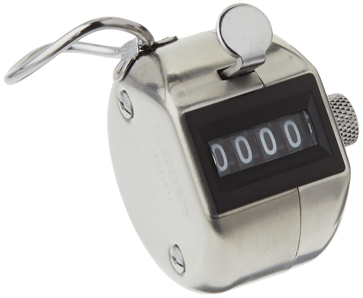 LION Heavy-duty hand-held tally counter with convenient finger ring. Built with hardened steel mechanism for durability and years of quality use. Easy operation 4 digit counter with simple thumb push to advance count. Counter accurately registers to 9999 and resets to zero. Reliable counter can be used for a wide range of counting applications such as show attendance, inventory, traffic count, etc. Light weight (3.5 oz.) hand tally counter is easy to carry around anywhere. Quality steel with high polish chrome finish. Made in Japan.