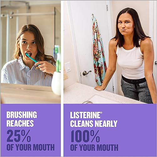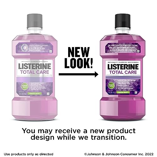 Give your mouth complete care with ADA-accepted Listerine Total Care Fluoride Anticavity Mouthwash. This Fresh Mint-flavored mouthwash for bad breath provides six dental hygiene benefits in one powerful oral rinse & up to four times the fluoride uptake versus Act,* & provides 50% greater strengthening of weakened enamel vs. brushing alone in lab studies. The fluoride-rich oral rinse formula helps prevent cavities, restores enamel, & strengthens your teeth to improve oral health. Use remineralizing mouthwash to freshen breath, kill germs that cause bad breath, & clean your whole mouth. This oral rinse is accepted by the American Dental Association’s (ADA) Seal of Acceptance Program & features a fresh mint flavor that gives your mouth a clean feeling you can taste. *In laboratory tests compared to Act Total Care Anticavity Fluoride Rinse.