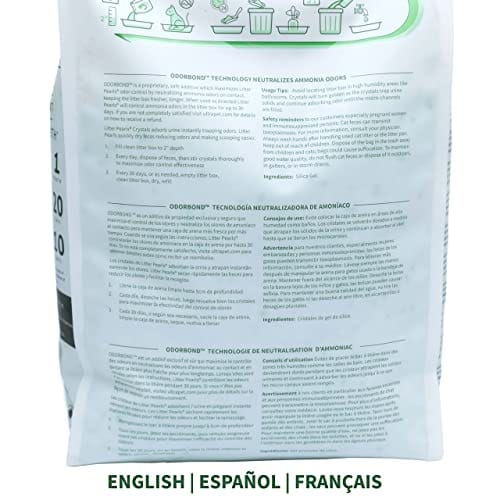 Litter Pearls Crystal Clear Comfort Pearls cat litter with ODORBOND is the ultimate non-clumping litter for odor control. Litter Pearls was the first U.S. brand of crystal cat litter and is made with the highest quality Silica Gel crystals available. Silica Gel is safe, non-toxic and allergen-free. Not only are Litter Pearls crystals safe for cats and people, they are also lightweight with high absorbency properties, requiring less litter than clay and other types of litters. This means, using Litter Pearls, less litter per cat ends up in the landfill. Crystal Clear?s powerful odor control is supplied by ODORBOND Technology, a proprietary, safe additive which neutralizes ammonia odors on contact. When used as directed Litter Pearls Crystals Clear will control ammonia odors for up to 30 days, keeping the litter box fresher, longer. Litter Pearls Crystal Clear Comfort Pearls are fragrance free and super soft on cats’ paws for maximum comfort and a more pleasant litter experience.