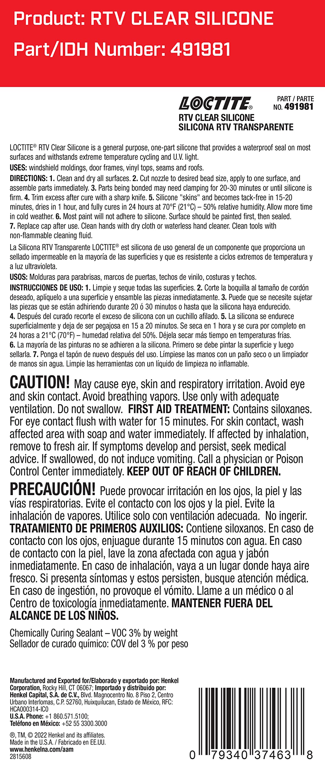 LOCTITE RTV Clear Silicone Adhesive Sealant