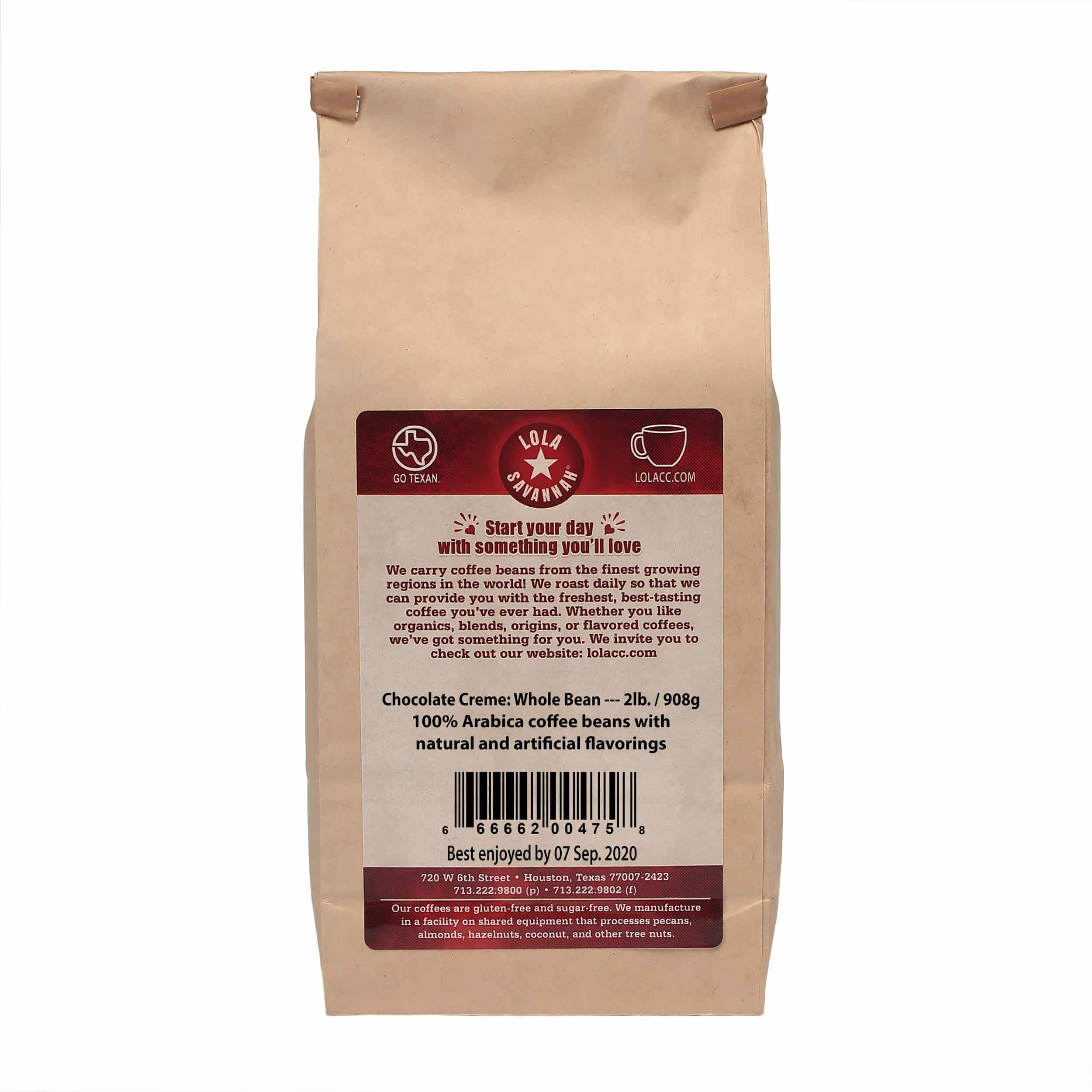 - Variation(in Size or Color) -FlavorName: Chocolate Cr?me; Size: Whole Bean Caffeinated (2 Pound);