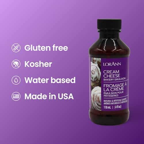 - LorAnn’s Cream Cheese Emulsion will infuse your frostings and baked goods with the irresistible flavor of cream cheese. Pastry chefs and cake artists tell us its great for adding to a shelf-stable buttercream frosting, making it a safer choice for cakes during the summer, and the ideal alternative to frosting made with cream cheese.