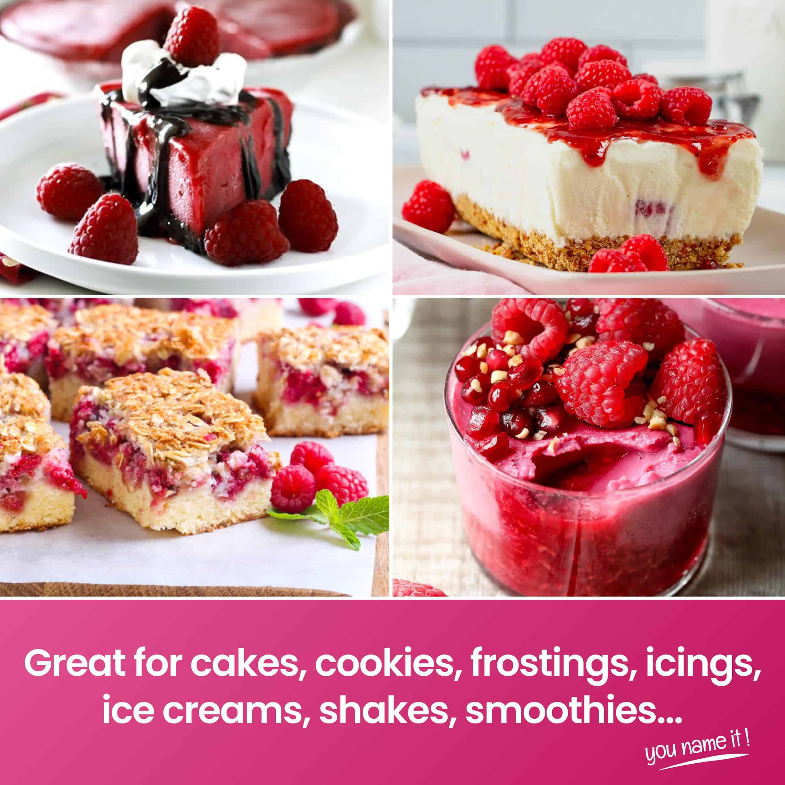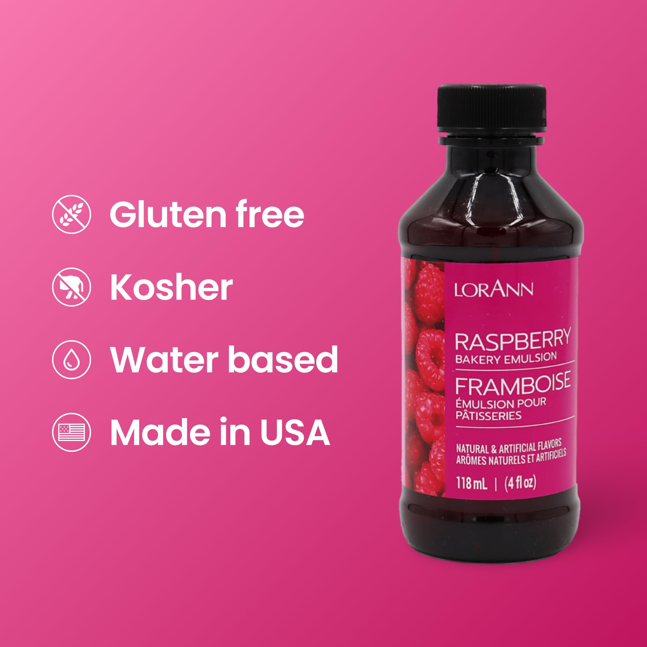- LorAnn’s Raspberry baking & flavoring emulsion tastes like fresh ripe berries. Great for cakes, cookies, frostings, fillings, and desserts. Add it instead of using raspberries or in addition to the fruit to add a punch of raspberry flavor. Use in any recipe as you would a raspberry extract – and experience more flavorful results!