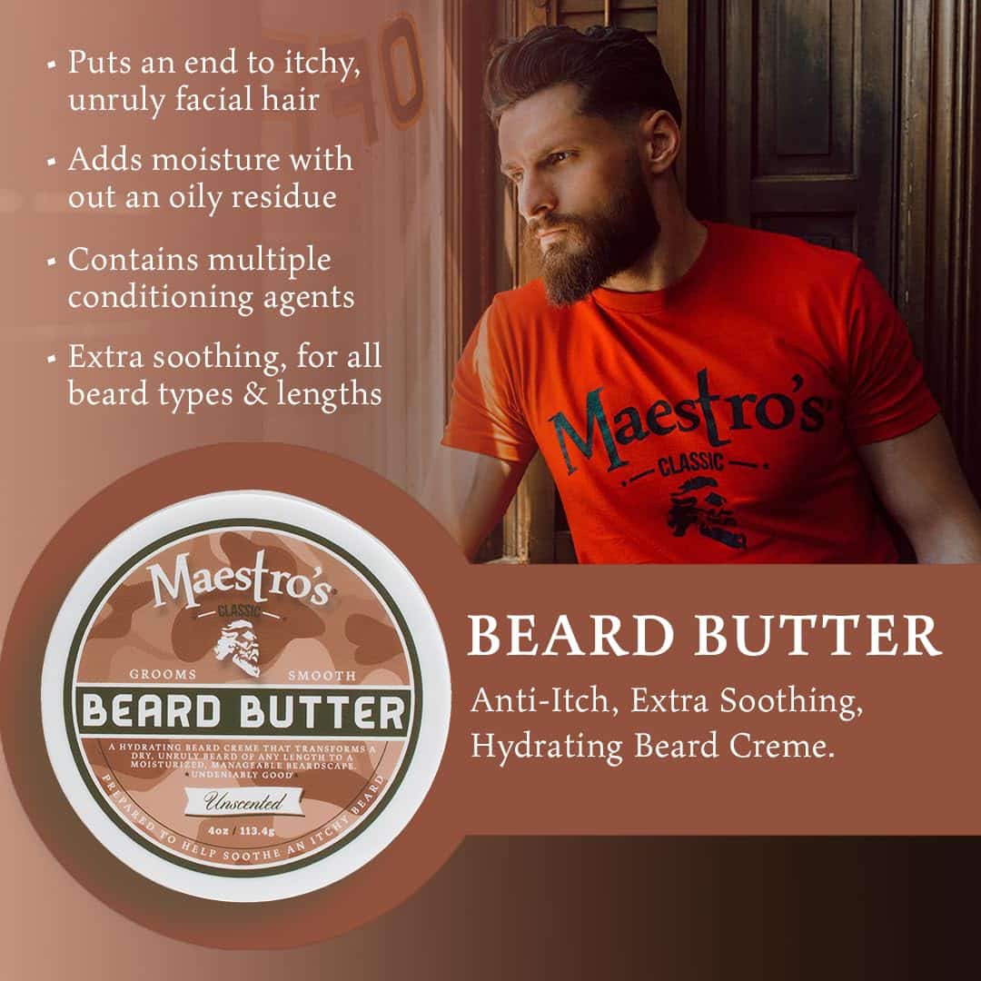 - HOW THE MAGIC HAPPENS: Since every Maestro is different the amount used will vary. After washing with Maestro?s Classic Beard Wash we recommend applying a nickel size amount of Maestro?s Classic Beard Butter to a damp or towel dried beard and working it in thoroughly. Reapply throughout the day as needed to groom your beard smooth.