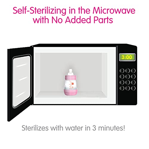 - EASY CLEAN – No need for a separate bottle sterilizer: MAM bottles self-sterilize in the microwave in 3 minutes, meaning fewer baby items to take on the go