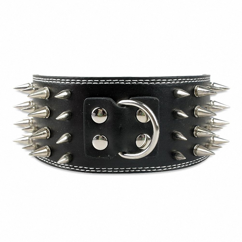 Kuntrona 3 inch Wide Spikes Studded Leather Pet Dog Collar for Large Breeds Pitbull Doberm