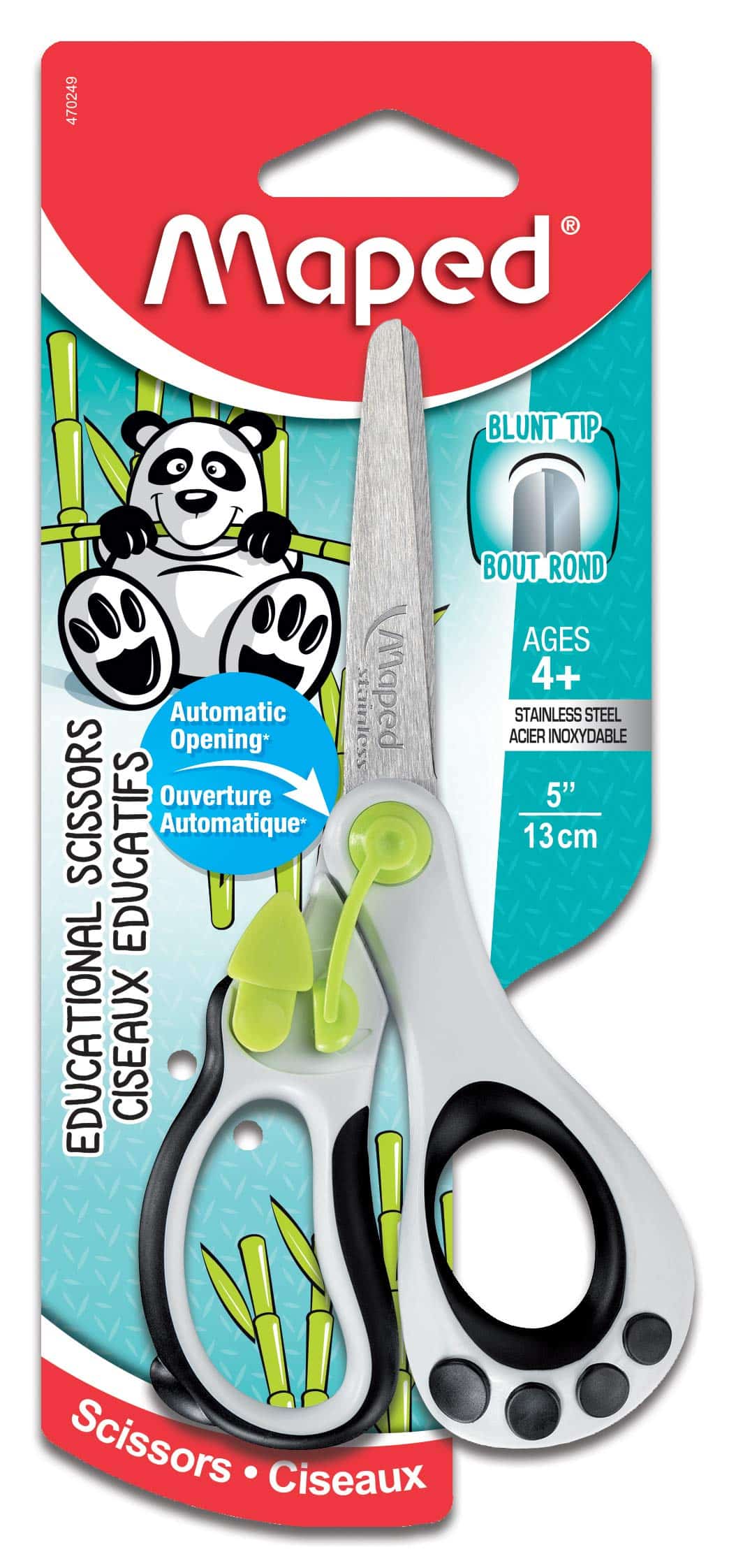 - Perfect beginner’s scissor for learning how to cut (Pre-School Training Scissor); spring action opens automatically for, zero effort, assisted cutting