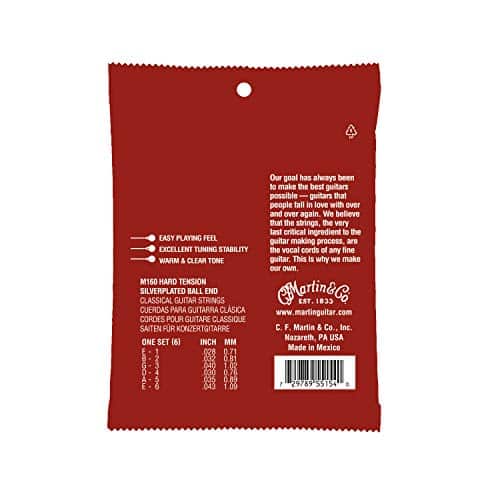 Martin M160 Silverplated Ball End High Tension Classic Guitar Strings are high-quality strings designed for daily use. Ball end. Silverplated winding resists corrosion has a longer life, is easier on the fingers, and has a clear tone.