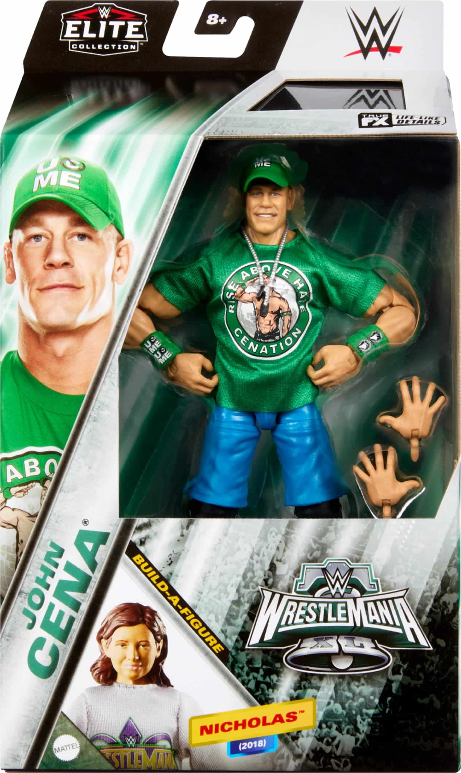 The road to WrestleMania begins with WWE Elite Collection action figures! Play out WrestleMania moments from WWE Superstars The Rock, John Cena, Pat McAfee, and Trish Stratus. Each figure comes with iconic accessories and pieces to build a Nicholas figure! Make your collection elite! Each sold separately, subject to availability. Colors and decorations may vary.