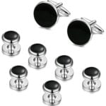 ORAZIO Cuff Links Mens Stainless Steel Cuff Links and Studs Set Gold Black Cufflinks for M