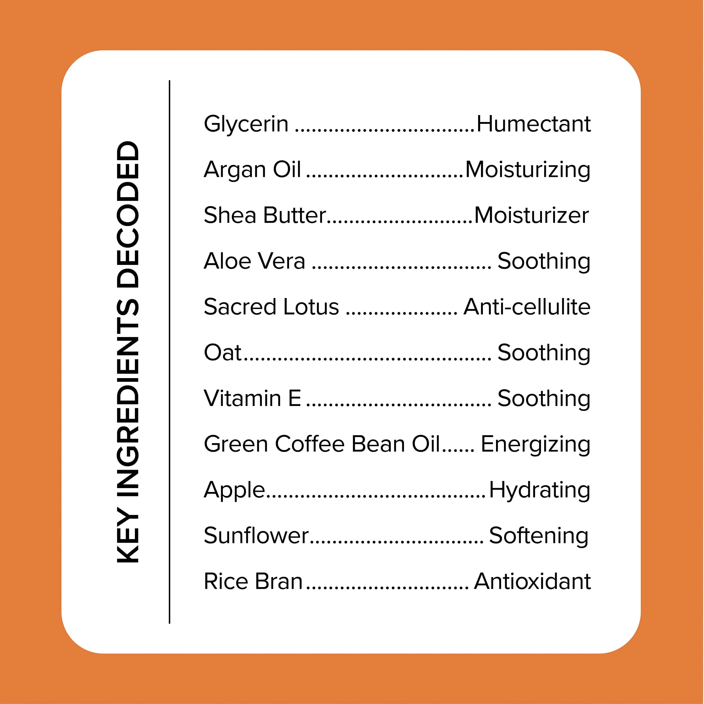 - DEEP HYDRATION FOR HEALTHIER SKIN ? Infused with Lotus Extract, Aloe Vera, & Coffee Bean Oil for instant hydration to the skin while increasing skin’s elasticity + complexion. Lotus Extract contains Vitamin C, Vitamin B complex, & antioxidants that help nourish and brighten your complexion. Coffee Bean extracts cleanse and purify your skin by reducing redness and puffiness while also tightening and exfoliating the skin.