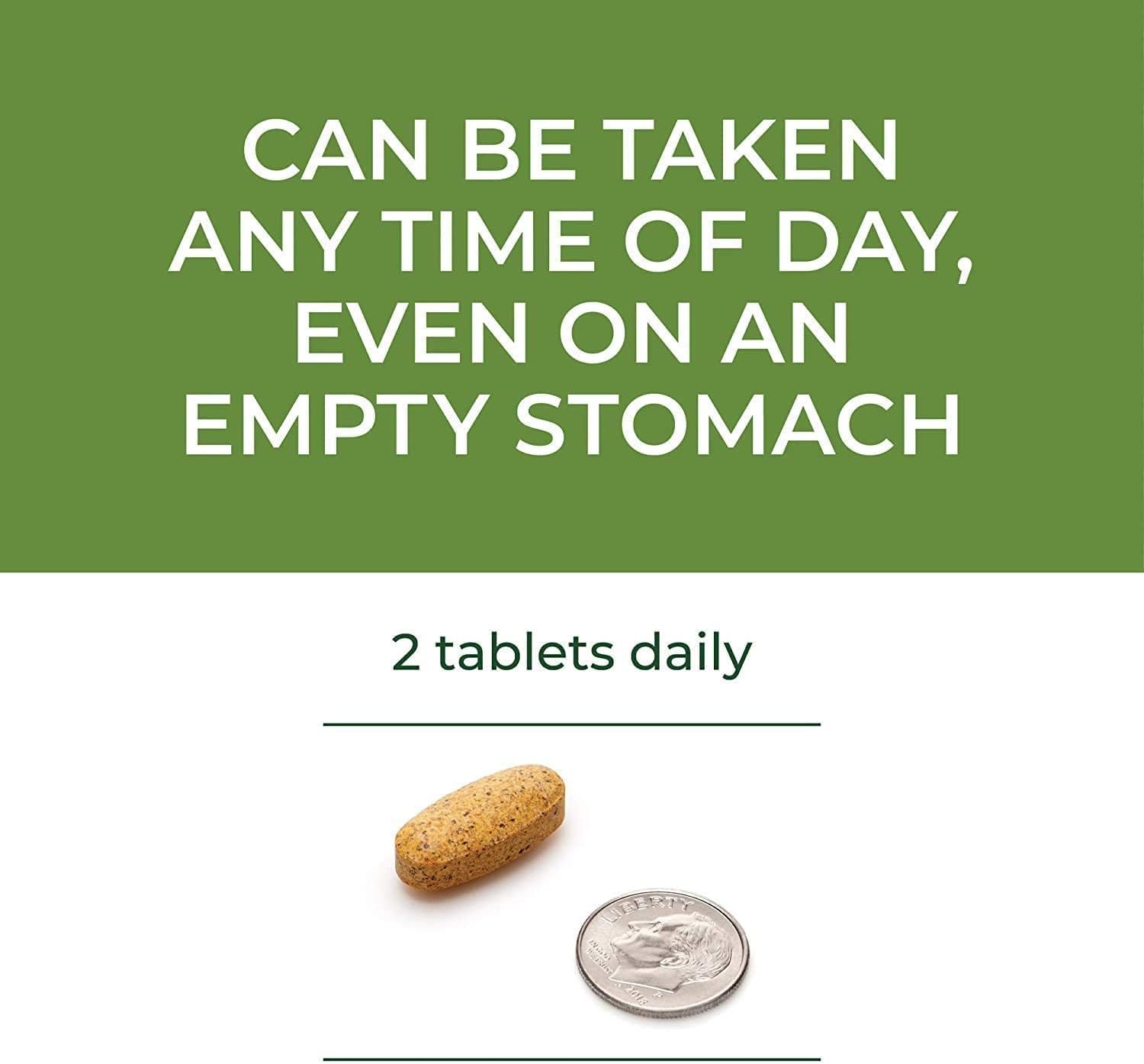 - Can be taken any time of day, even on an empty stomach. 2 tablets daily