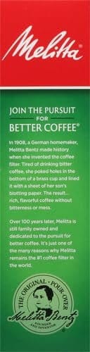 - JOIN THE PURSUIT FOR BETTER COFFEE: Melitta is dedicated to providing the ultimate coffee experience with our premium coffee filters, coffee pods, pour-over brewers, coffee makers & premium coffees.
