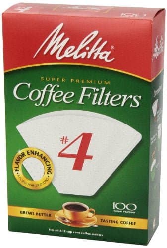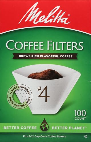 - CONE COFFEE FILTERS: These super premium Melitta cone coffee filters will fit all 8 to 12 cup drip coffee makers that have a conical shaped filter basket – as well as most pour-over coffeemakers calling for a #4 cone coffee filter like Melitta?s new Signature and Heritage Series. Our filters trap more bitter oils & impurities for a better cup of coffee. Naturally whitened. Chlorine free.