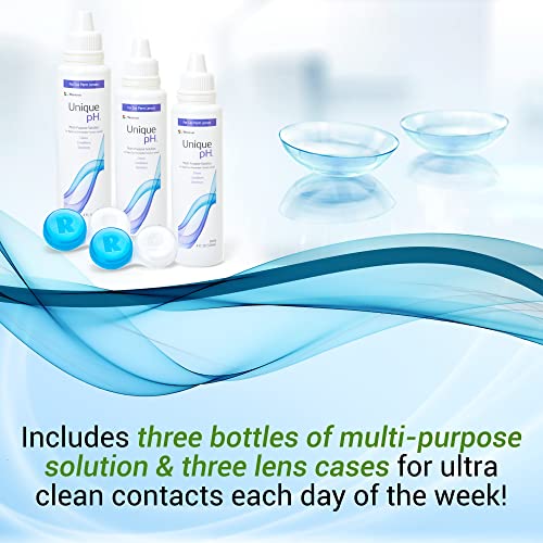 - ?? COMES IN HANDY LEAK-PROOF BOTTLE – Doing contact lens maintenance while constantly traveling may prove to be a daunting task, but with Unique pH Multi-Purpose Saline Solution?s Blow-Fill-Seal technology, the effective contact solution comes in travel-sized, handy, leak-proof, and tightly-sealed bottles. The 3-pack also comes with a free lens case to pack your RGP lenses!