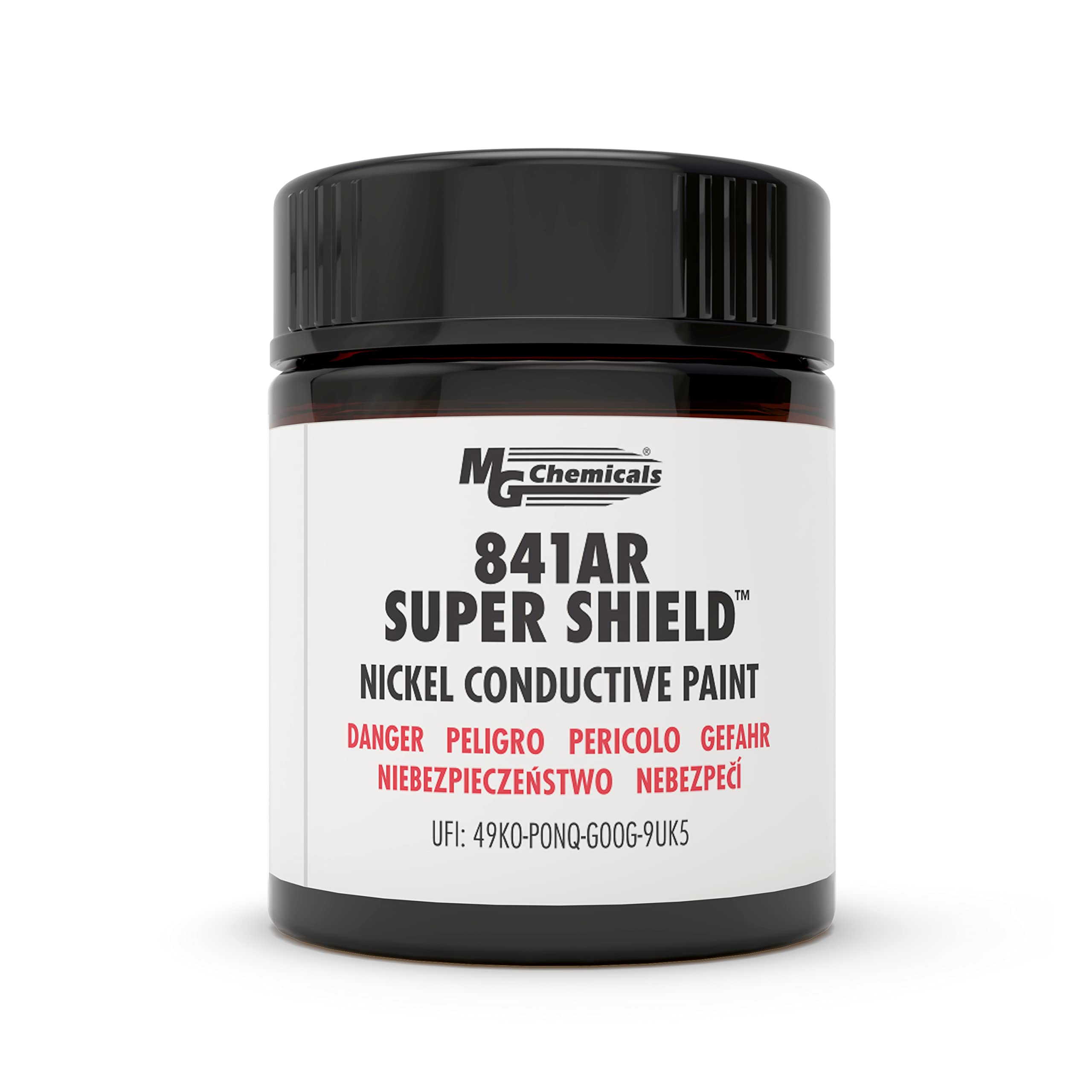 The 841AR Super shields Nickel conductive coating protects electronic devices in plastic Enclosures from electromagnetic and radio frequency interference (“EMI/RFI”). it is a durable acrylic lacquer pigmented with a high purity Nickel flake. It is an easy to use solvent based system, with no heat cure necessary. It has excellent conductivity, strong adhesion to plastics, great corrosion resistance, and has a wide variety of applications. The 841AR is designed to provide a conductive surface to the interior of plastic electronic Enclosures to suppress EMI/RFI emissions, allowing compliance to FCC rules, and protecting the device from external EMI/RFI, preventing possible malfunction. It may also be used to shield different circuits or components within a device from each other. 841AR adheres well to wood, copper, aluminum, and many other surfaces beyond just plastics. Applications: repairing damage to existing shielding, conductive undercoat for electroplating, protecting metal surfaces from oxidation, sensors, controllers, receivers, Test equipment, scientific equipment, medical equipment, communication devices, satellite dishes and Radar systems, antennas, aerospace applications, cable boxes, providing electric continuity for circuits, anti-static protection, grounding, cellphones, laptops, pad’s, gas’s, navigation systems, tv’ s, monitors, and displays, consumer electronics, electronic sporting equipment, audio equipment, electric guitars and other amplified instruments, drones and other RC vehicles, networking gear, firewalls, military equipment.