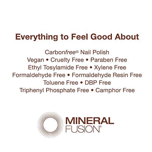 - Feel Good Formula: Offered in 64 beautiful shades, Mineral Fusion nail polish is 100 percent vegan and does not include toluene, camphor, DBP, or formaldehyde. Cruelty-free and certified carbon-free