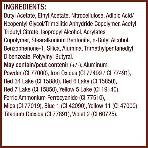 - Nail Polish: This long-lasting, chip-resistant nail polish applies flawlessly with a custom, extra-thick brush. Start with a base, apply polish, and finish with top coat. Dark purple with a cream finish