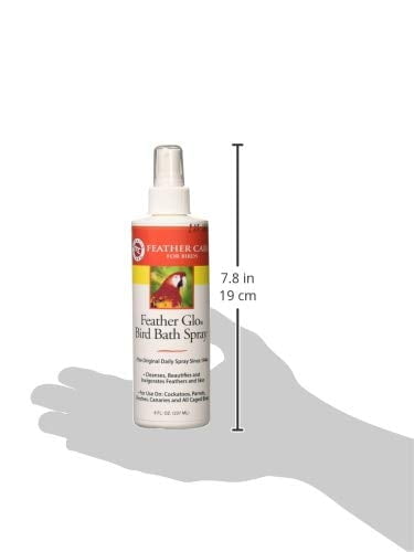Miracle Care Feather-Glo Bird Bath Spray is fatty acid-based which provides a soothing refreshing wash to the skin under the bird’s feathers and helps to keep natural oil glands open