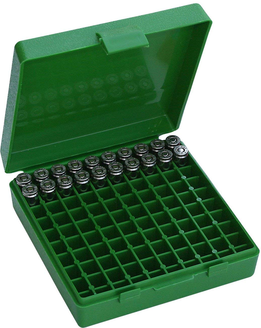 The P-100 Series offers Case-Gard protection in a 100 round flip top box. P-100s prove to be quite popular with law enforcement, competitive shooters, varmint hunters, weekend plinkers and anyone needing large amounts of ammo for several hours of shooting. Ideal for storing reloads, the P-100 series features a scuff-resistant textured surface, snap-lock latch, stacking feet, mechanical hinge and load labels, along with an unheard of, 25 year guarantee. All MTM Case-Gard’s are MADE IN USA in their factory in Dayton Ohio.